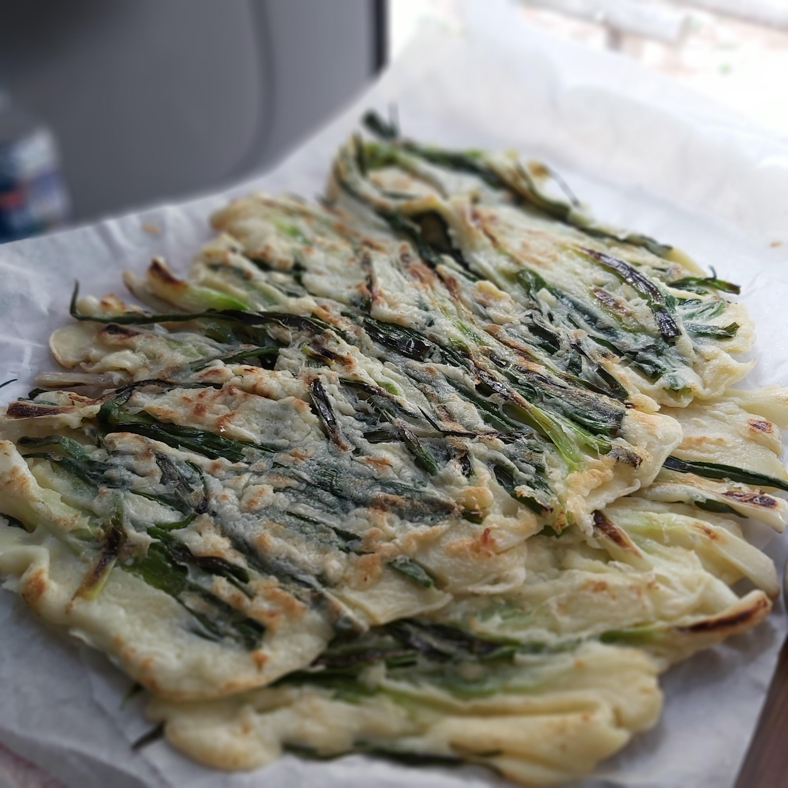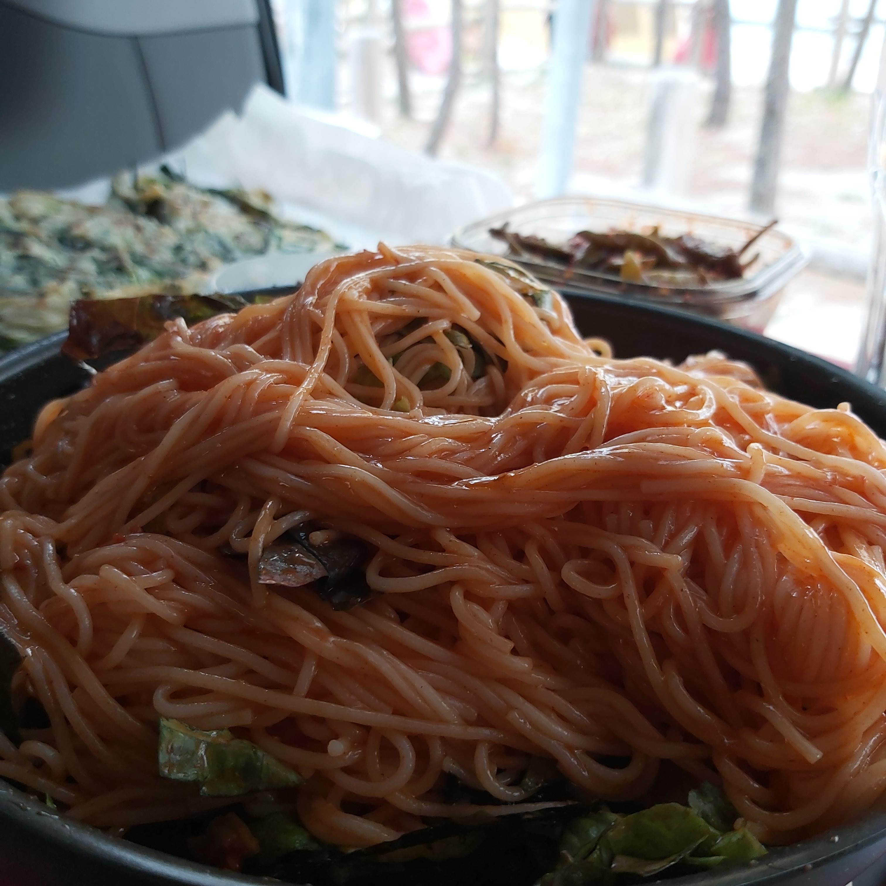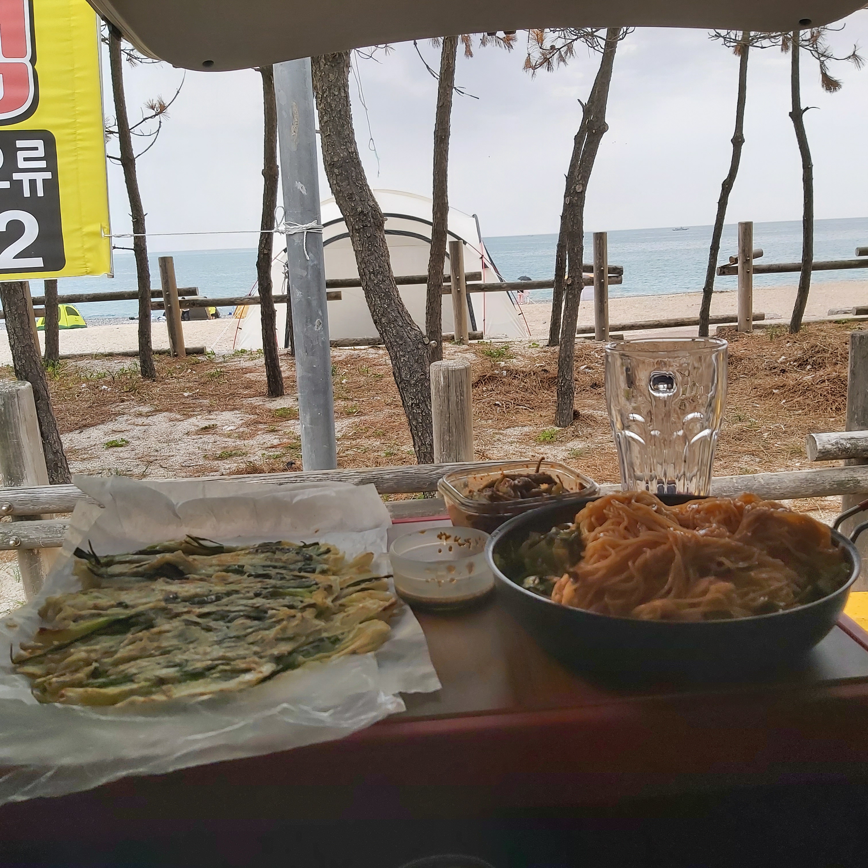 도착해서 파전 구워먹고 점심 으로 소면 삶아서 비빔면 해먹었습니다.