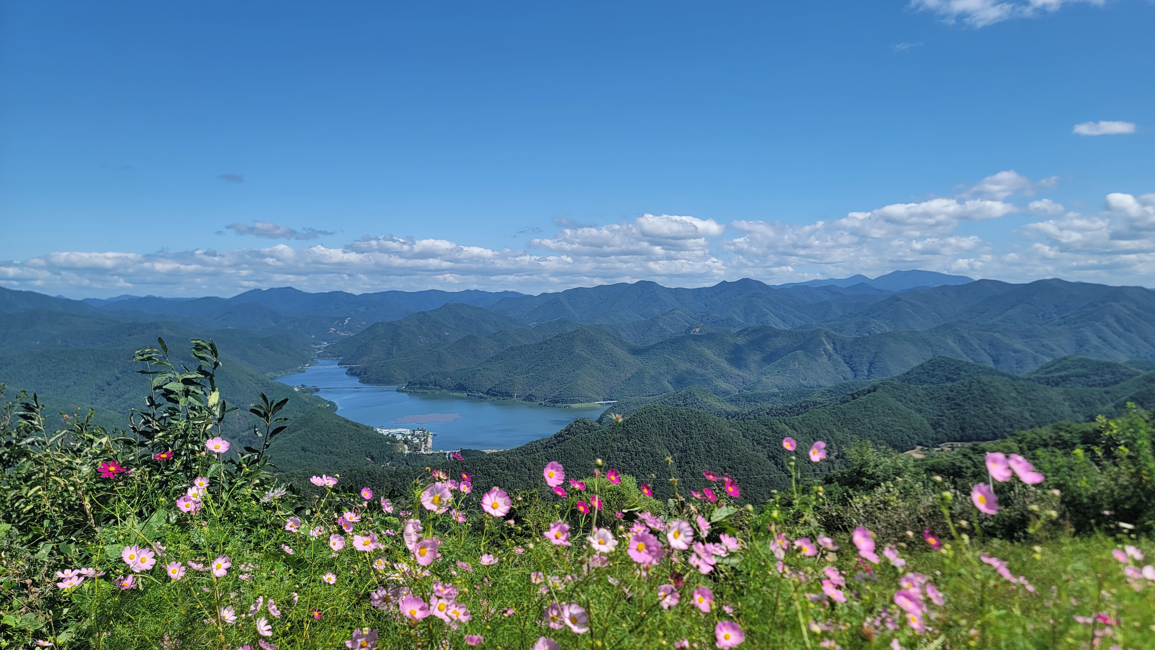 가을이다보니 맑은 하늘과 코스모스가 아주 멋지다.