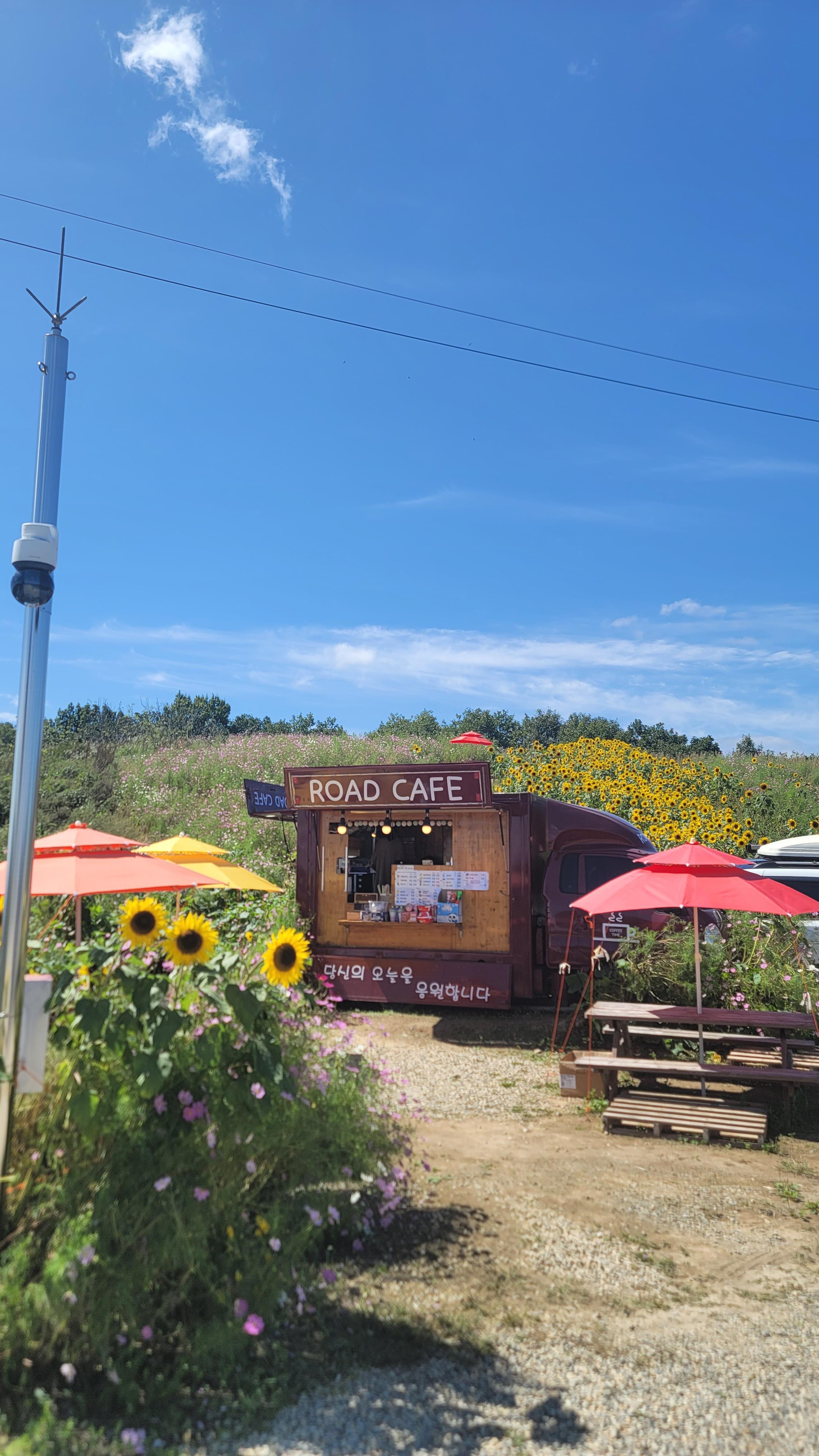화산마을 하늘전망대에는 해바라기와 커피 파는곳도 있다
