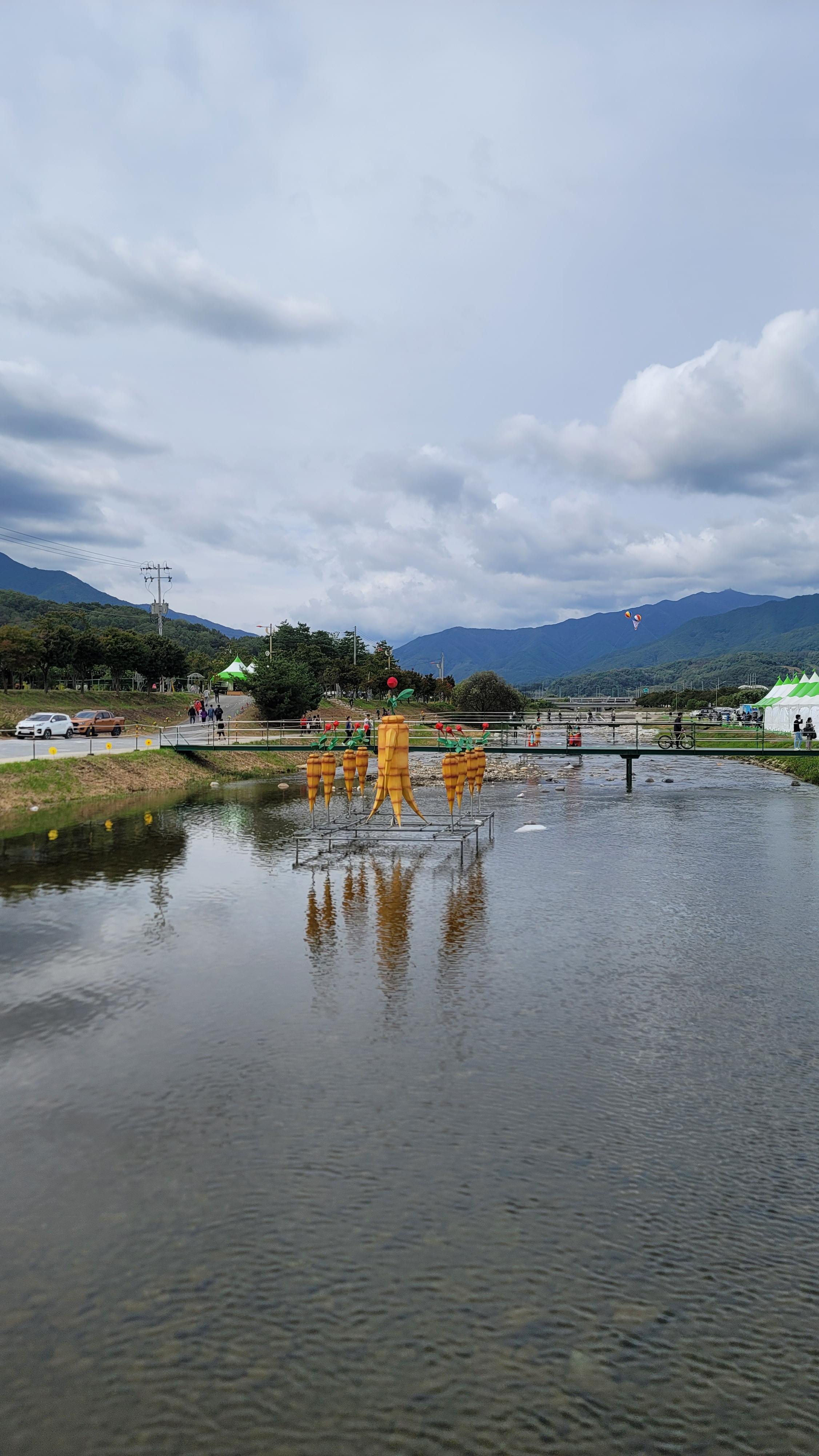 풍기역에 내려서 5분남진 걸어서 직진 해서 강변으로 나오면 풍기인삼축제장이 나온다.